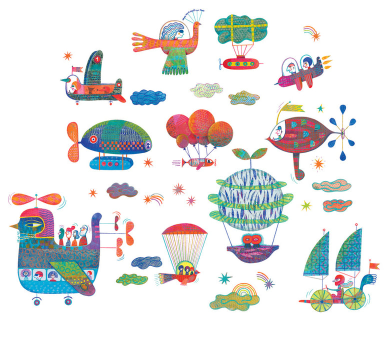 Aknakleebised "Taevaliiklus" on 44 eelmaldatavat aknakleebist, mille on välja töötanud Djeco, et aidata kujundada lastetuba vastavalt lapse unistustele ning soovidele.
