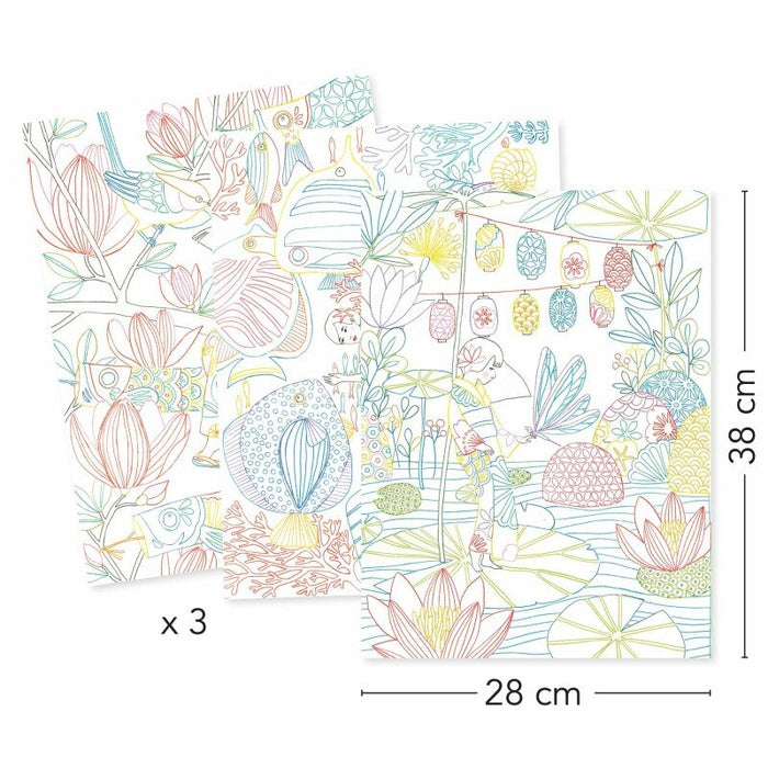 3 värvimislehte. Ühe lehe suurus 28 x 38 cm.