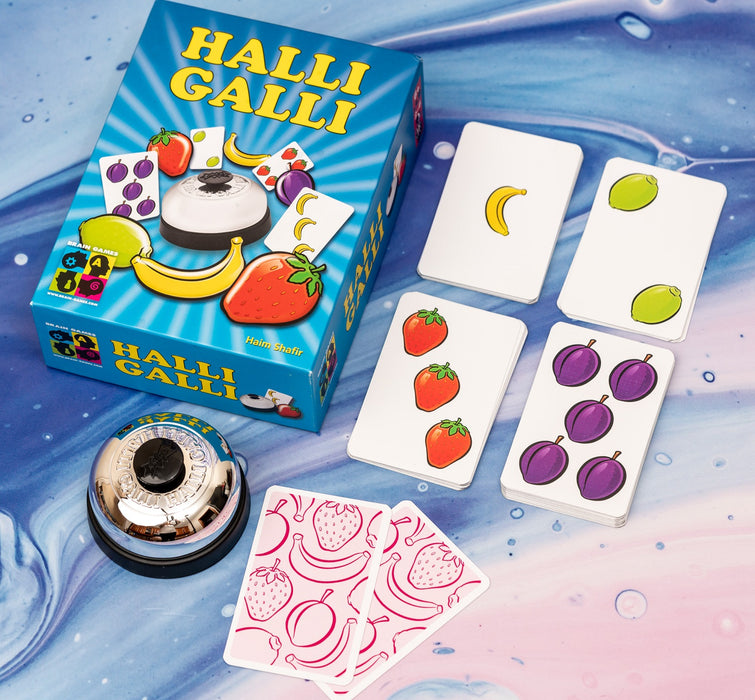 Lastemäng "Halli Galli" on kiire reaktsioonimäng. Mängijad asetavad oma kaardid lauale ja kohe, kui keegi näeb viit ühesugust puuvilja, peab ta helistama kella.