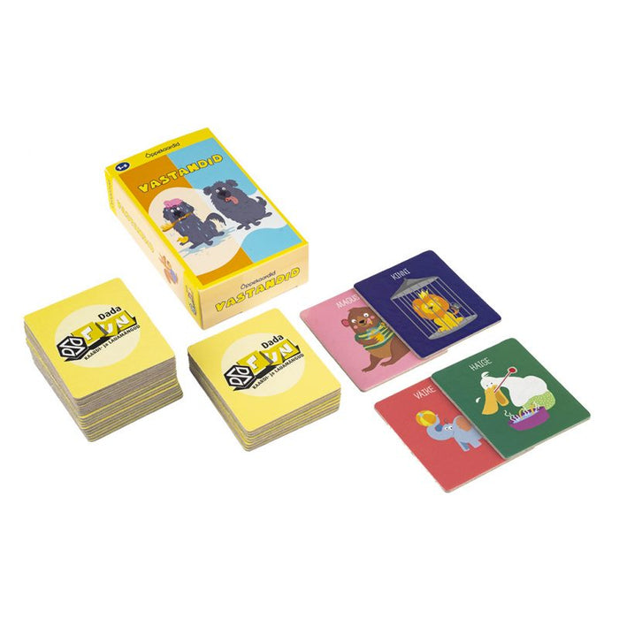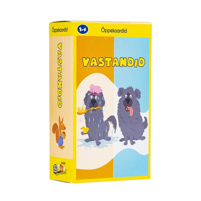 Kaartide abil õpib laps vastandsõnade tähendust, arendab mälu ja loogikat. Kaardipakis on 15 paari, kokku 30 pappkaarti.