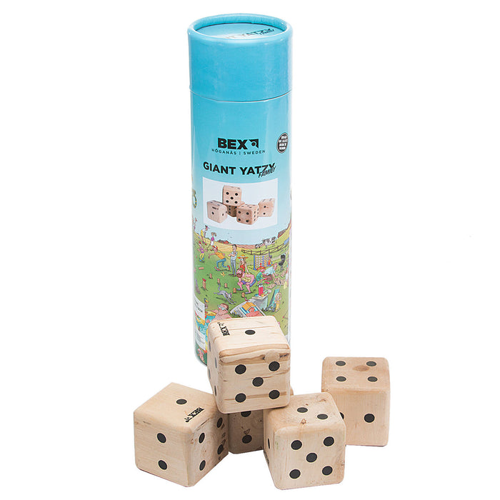 Komplektis 5 täringut (6 cm) ja tulemuste paber.