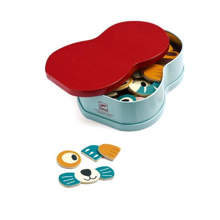 Uus viis magnetitega mängimiseks. Lapsed kleebivad magnetilised puidutükid vormitud metallkarbi külge, et luua igasuguseid lõbusaid loomi. Karbi mõlemad pooled on illustreeritud, mis tähendab, et mõlema poolega saab mängida. Mängu lõpus saab tükke hõlpsasti metallkarbis hoiustada. Lõbus "mix and match" magnet mäng, mis arendab laste kujutlusvõimet. Komplekti kuulub metallkarp ja 41 puidust magnetilist detaili. Sobib alates 2 aastast.